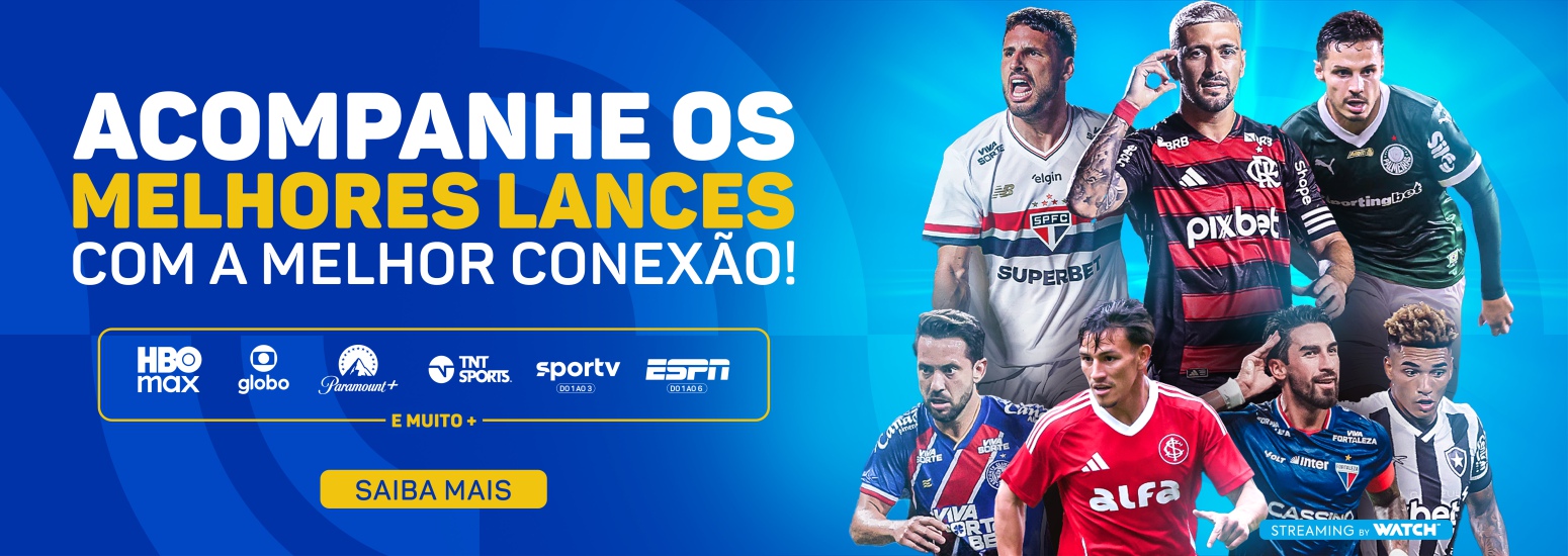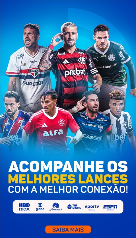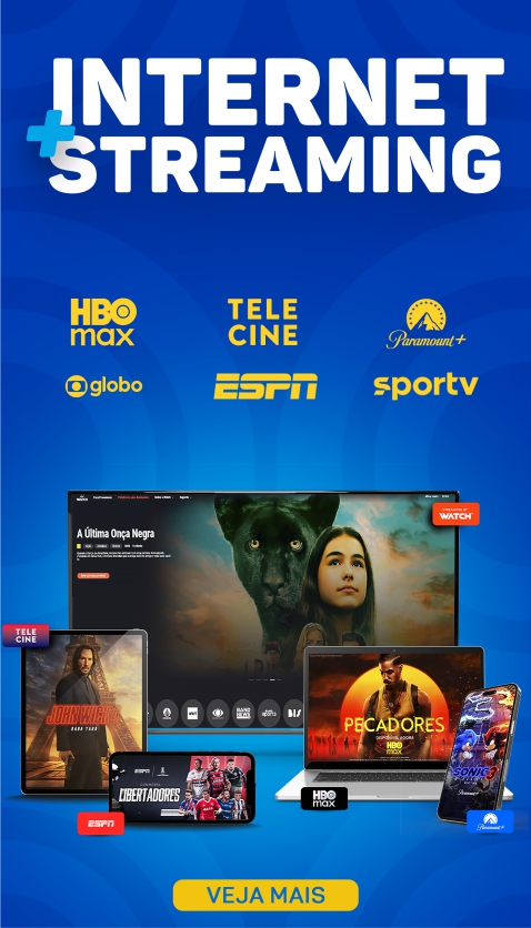 Instalação Grátis. *Wi-Fi 6 em comodato, somente para novas contratações. Download 950 Mega. Upload 950 Mega. *Plano de Internet Fibra Ótica, pré-pagos, exclusivos para novas contratações em áreas urbanas com uso residencial para até 10 dispositivos simultâneos. *Planos e valores diferenciados para empresas e áreas rurais com ativação sob consulta de viabilidade técnica conforme projeto e demais condições no ato da contratação. *Plano com acesso: Canais ao vivo- Globo, sbt, band, redeTV, Record, Futura, CNN, Gazeta, TV aparecida, TV Brasil e canção nova, Globo news, sportv, sportv2, sportv3, multishow, gloob desenho, globinho infantil, viva, off, bis, universal studios, universalTV, canal brasil, GNT, modo viagem, USA, megapix. Canais Sport - ESPN, ESPN2, ESPN3, ESPN4, ESPN5, ESPN6 Paramount - Paramount+, MTV, NickelondeonJR, Nickelodeon, Comedy Central MAX - Hbo, discovery, Cartoon Network, TNT Sports, Discovery h&h, Discovery Kids, Champions League. *Promoção não cumulativa com outras promoções. *A continuidade dos serviços (pré-pago) depende do pagamento em dia.
